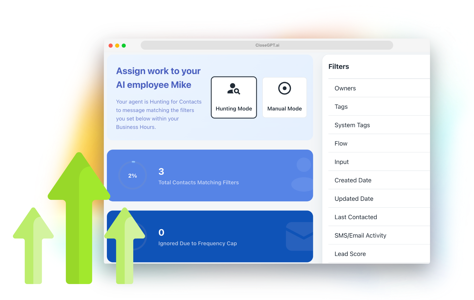 CloseGPT Agents are AI-driven sales and customer service assistants designed to automate follow-ups, nurturing contacts, re-engaging existing customers, and more. They act as an extension of your team, ensuring efficient and timely interactions without the need for additional manpower.